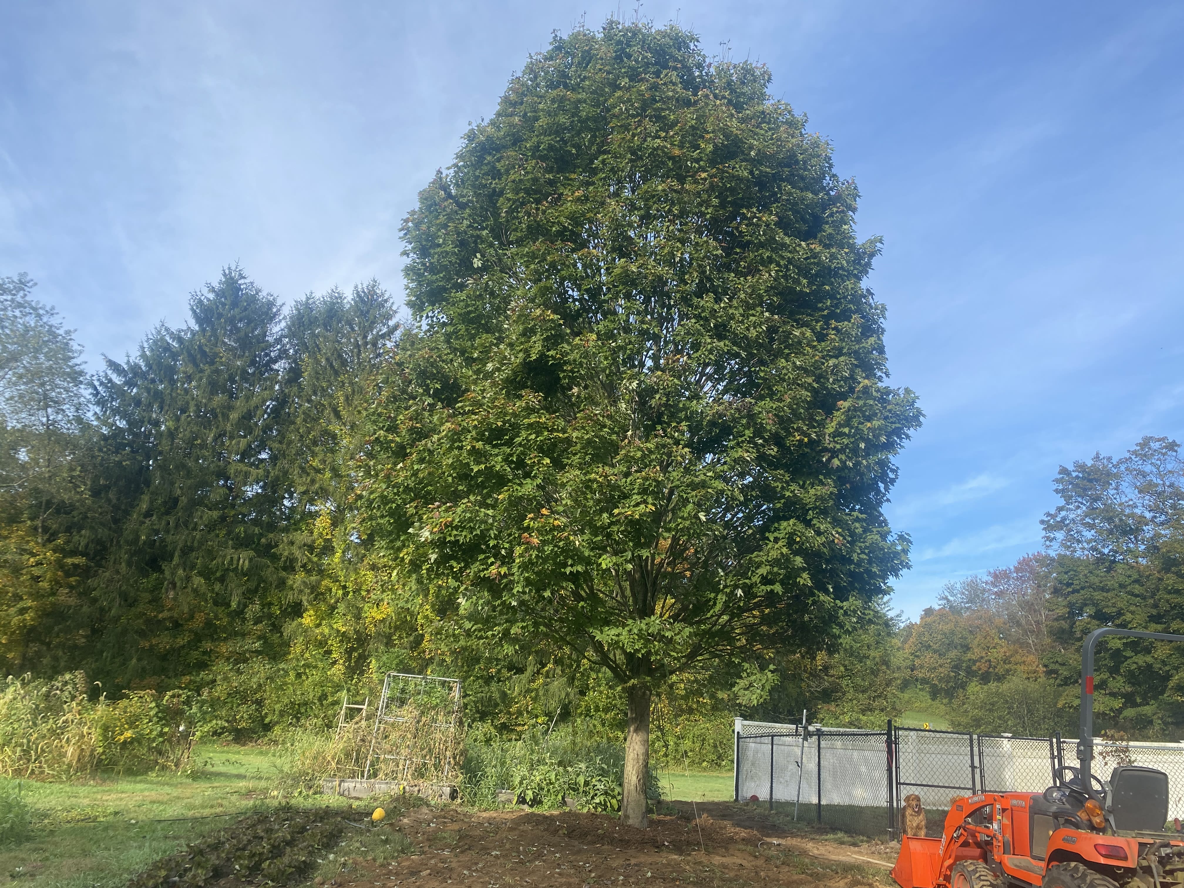 I had long planned a lunch with two close friends about 45 minutes away the day of delivery, so everything was done by the time I arrived back home. I parked the car and gaped up at the stately red maple, with its beautiful shape, already casting generous shade over our patio.