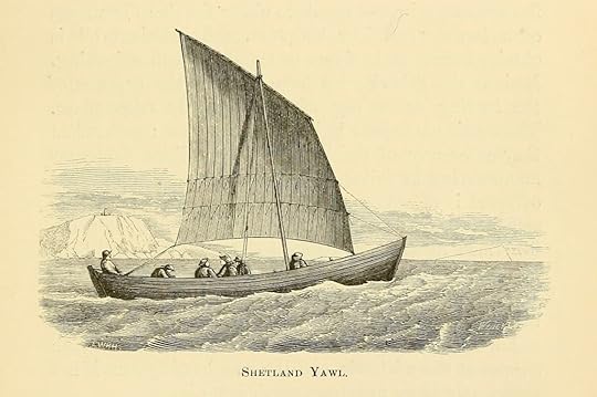 Shetland Yawl (Holdsworth 1874)As the men were hauling in their fishing lines, they saw in the distance what appeared to be three hills, each the size of an upside down six-oared boat. Something blew out of the water and the fishermen thought there must be three whales following each other. When the three hills sank under the waves, the crew saw to their horror that it was not three whales but one huge creature, and it was heading straight for them, possibly attracted by their haul of fish.