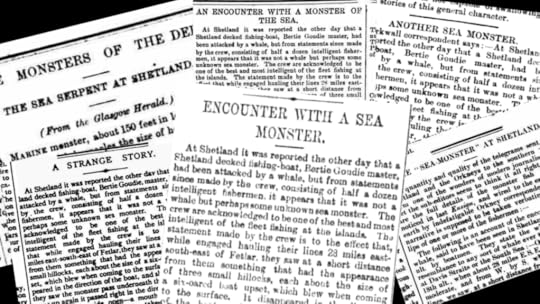 [i] ‘The monster of the deep’, Glasgow Herald, 2 June 1882, p.9; ‘The sea monster at Shetland’, Northern Ensign and Weekly Gazette, 8 June 1882, p.8; ‘Encounter with a sea-monster’, Illustrated Police News, 10 June 1882, pp.1-2
