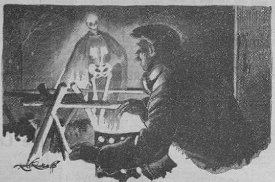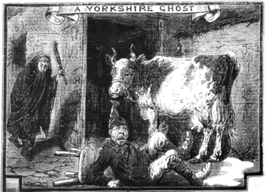 The ghost was also encountered by a young servant girl. She described its fearsome height, its white robes and ominous gestures. She threw her apron over her head and ran home. We are told that she has not spoken since and retired to bed in shock.