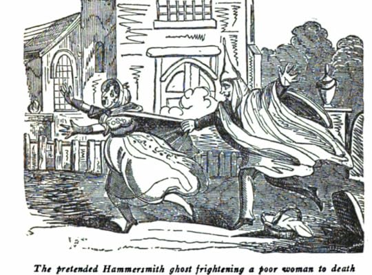 Each night gangs of young men armed themselves with stout cudgels and patrolled the streets of the town, though it seems it was never caught. Lucky for him. When ghost hoaxers like this were caught, they were often badly beaten and dumped in the nearest canal, river… or sewer.