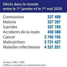 En ningún momento a nadie se le ha ocurrido decir que el Covid-19 (leí que hay que ponerlo en femenino porque es una enfermedad, pero entonces que me expliquen el sarampión, el cólera o el tifus) es la principal causa de muerte en el mundo, porque sería mentir. Pero, independientemente de si puede causar en el futuro más o menos muertes, habrá que tratar de vencerla con todos nuestros medios. Lo mismo que se trata de reducir las muertes por el resto de las causas que aparecen en la imagen, aunque cierto es que, como en el caso de la malaria y otras enfermedades infecciosas propias de los países tropicales, se debería estar haciendo más.