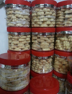 Maka bermulalah saya bukak order pada kengkawan rapat dan kwn2 pejabat. Dan syukur... responnya agak bagus for a first timer baker mcm saya ni. Saya pun tak target beratus-ratus balang sbb saya sedar kemampuan dan kapasiti saya. Aiyoo... penat jugak weh...lenguh tangan menguli tepung. Dahlah tangan I kecik jer...:P.