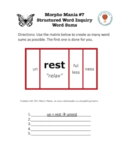 It's never too early to start teaching morphology. Children as young as kindergarten benefit from learning basic suffixes such as -s, -ed, and -ing. Many older students working on a Scope and Sequence that starts with closed syllables (short vowel sounds) can handle word sums like the one below from the Gods and Gifts Activity Book: 50+ Activities and Games for Decoding, Reading Comprehension, Writing, and Speech. The word matrix examples in this blog were all created using the Mini-Matrix Maker at www.neilramsden.co.uk/spelling/matrix.