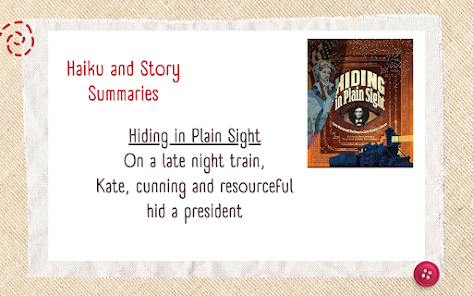 During the presentation, I will also share haiku based on the picture books of the other panelists. Here is one below from Beth Anderson's book, Hiding in Plain Sight: Kate Warne and the Race to Save Abraham Lincoln. This haiku is also a story summary. The book is illustrated by Sally Wern Comport and tells the story of a female detective who helped save President Lincoln from an assassination plot on his way to his inauguration. I always learn an interesting tidbit of history from Beth's books.