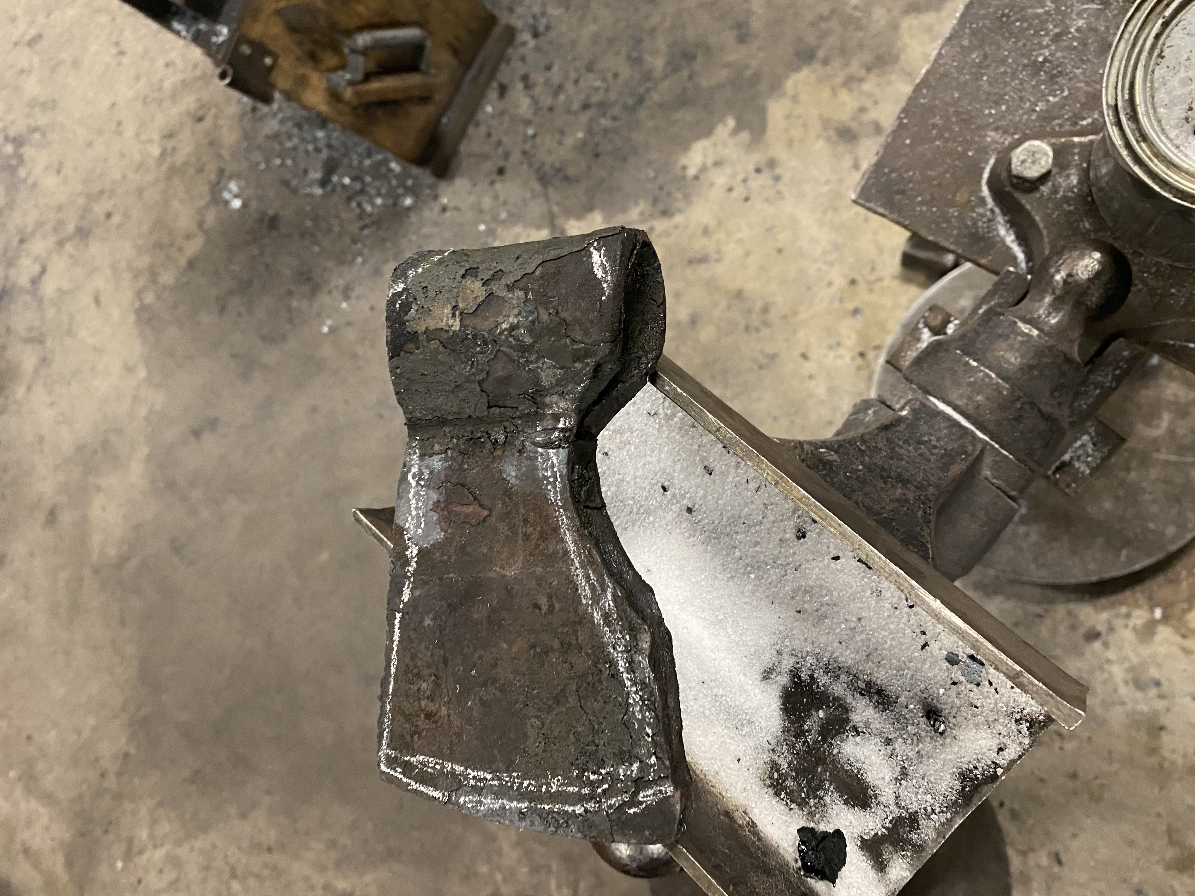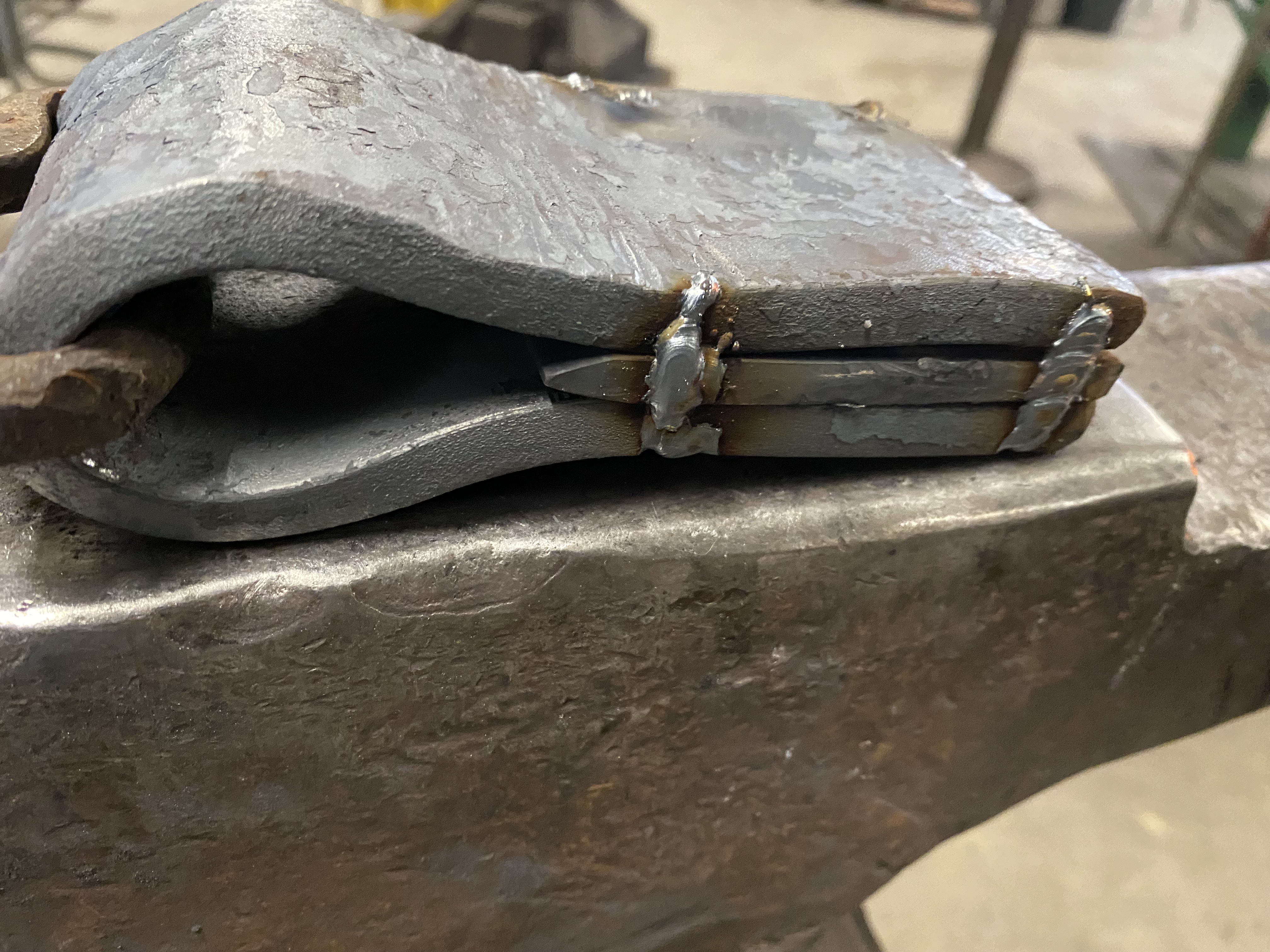 Cart of tongsCart of tongsfrogeThe ForgeCutting off a piece of stealCutting off a piece of steelCleaning up billetCleaning up the sharp edgesPlant hanger and hookPlant hanger and hookFire poker with twist and wrapFire poker with twist and wrapSpot welded billet for axeSpot welded billet for axeThe forgeThe forgeAxe billet ready forge weldingAxe billet ready forge weldingfluxing the billetFluxing the billetfoot powered hammerDrawing out the axeQuenching the axeQuenching the axeThrowing axe ready to shapeThrowing axe ready to shapeAxe head shapedAxe head shapedReady to clean up the eyeReady to clean up the eyeFinishing the axe surfaceFinishing the axe surfaceThrowing axe completeThrowing axe completeHatchet completeHatchet complete axes Previous Next What's next?