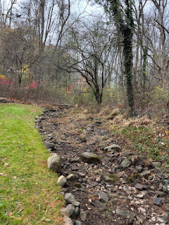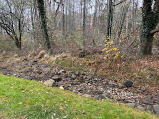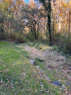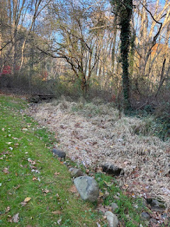 The brook is dry and overgrown with weeds. We have plans to weed it before winter!