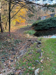 In November, we got some more much needed rain, and the pond got back to a better level. The colors of fall were still mesmerizing, but the temperature was going down. We were able to get out and weed the brook, after it became overgrown during the drought. It was a lot of work- but worth it, as we got lots of rain right after we finished, and the water had somewhere to go. Fall went out with brilliance!