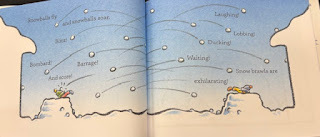 I love the way the illustrations are done because they really help tell the story with the text. The kids in the story have a blast pelting each other with their snowballs, and just reading this book makes you want to get out and play!