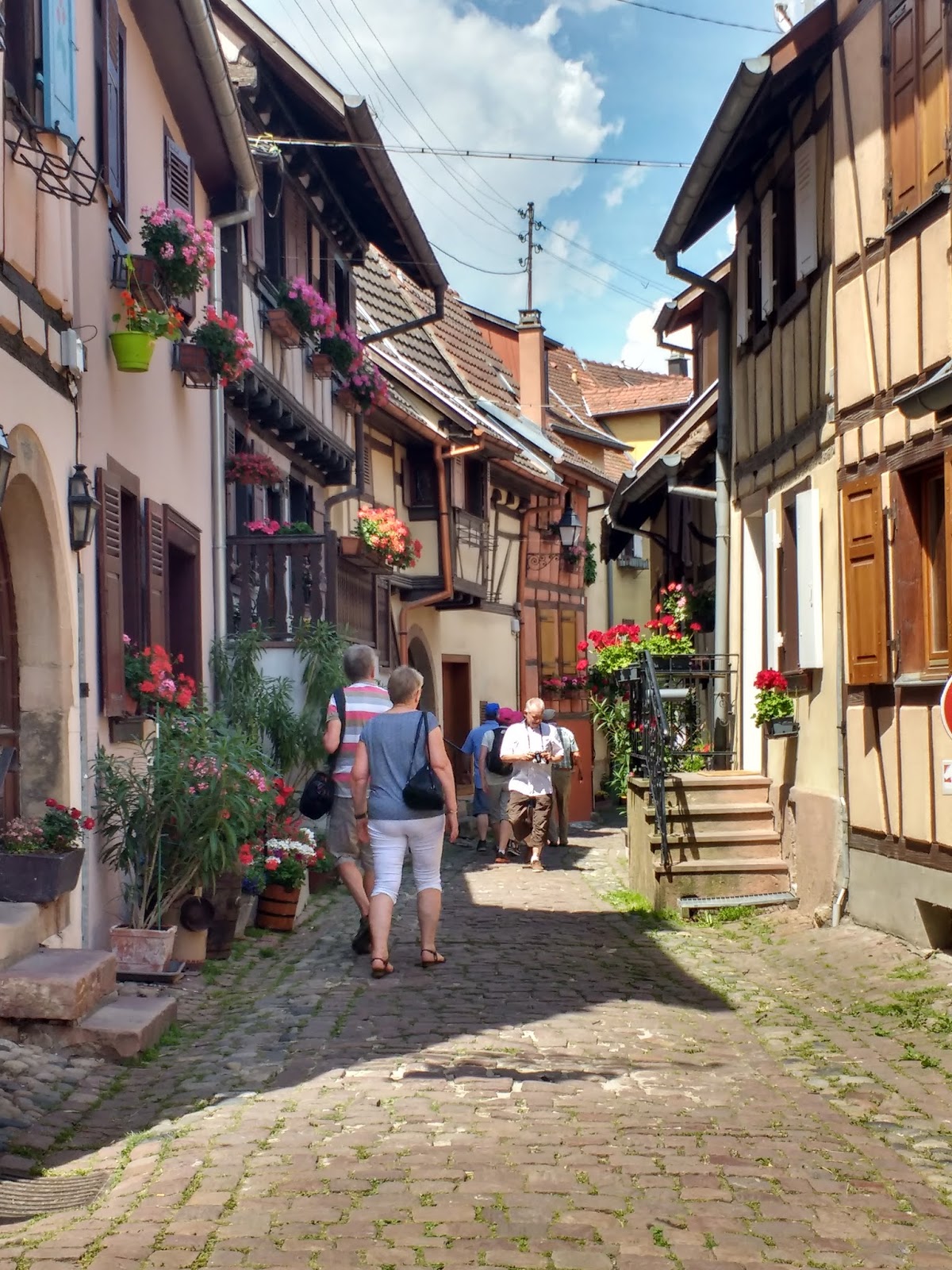 En realidad, después se convirtió en el anteúltimo porque un grupo de señoras que no paraban de reírse y tomaron con nosotros un paseo en bote en Colmar, nos recomendaron pasar por Eguisheim. Es el pueblo donde nació en 1002 el Papa León IX que, desde mi humilde punto de vista, no pudo hacer mejor contribución a la humanidad que haber nacido en allí, así se nos ocurría ir a verlo.