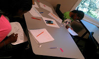 I was invited to co-host a Youth/Teen Workshop held by the Writers’ Tablet over this past weekend and we implemented a technique called “Pass the Stick."  This method is used to stir the creative juices of the students and expound their thought process. Terri began the prompt and each student was instructed to add one complete sentence to the story. Some of them got a little carried away. We had a blast!