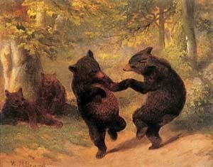 Aum! Kata budak lelaki tadi, berpura pura menggigit tangan budak perempuan. Saya nak makan roti ni, jadi kuat dan boleh lindungi awak dari diancam kepupusan. Saya akan tumbuk kepupusan tu kalau dia kacau awak. Kemudian kita boleh jadi sepasang beruang paling bahagia dalam dunia!