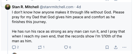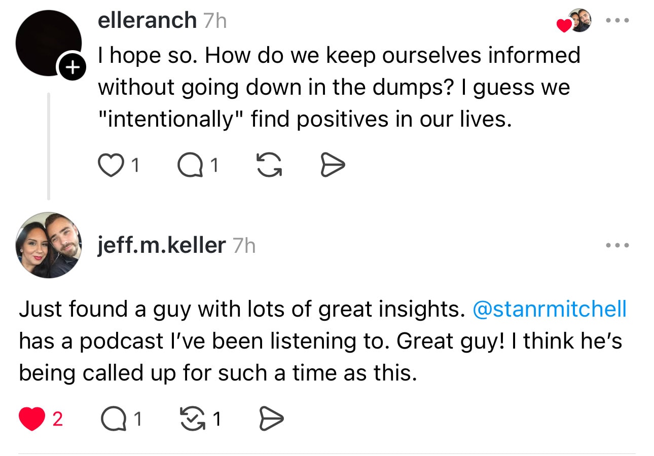 Political thoughts from a Southern GentlemanI’m a prior Marine and Republican, who's now a moderate. I write Lincoln-like political thoughts, full of kindness and hope. I truly believe most Americans are good and we need compromise, unity, and love. Not mockery or extremes.By Stan R. MitchellAnd with that, thanks for joining us this week.