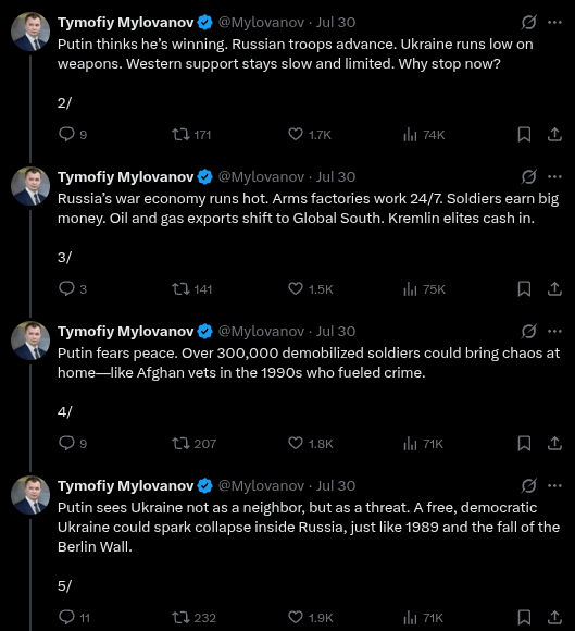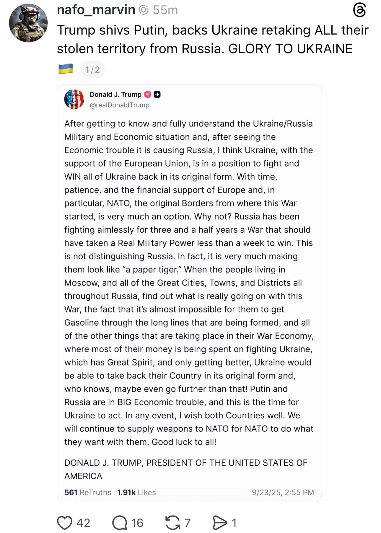 So it’s NATO’s fault he couldn’t solve the war in a 24 hours? And to me, this reads like he finally found his escape clause, eight months later. He’s done with the war.