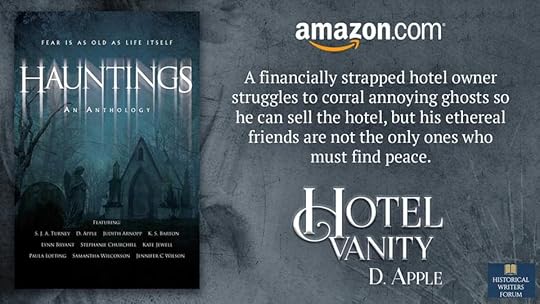 Today, Lynn Bryant hosts D. Apple: Danielle’s contribution to Hauntings is a story called Hotel Vanity which brings a light-hearted tone to the collection. It is set in a decaying hotel, where the owner’s efforts to sell-out are hampered by some mischievous ghosts.