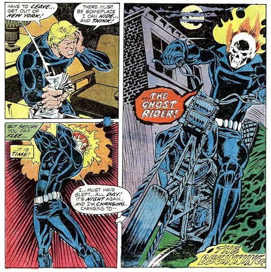 GHOST RIDER (Gary Friedrich, Mike Ploog, Roy Thomas). This is the Marvel horror character that you’re most likely to know because he has appeared in movies and on television. Apparently one day Gary Freidrich, Roy Thomas, and Mike Ploog (creators of Ghost Rider) said: “Hey, you know, Evil Knievel is real popular and The Exorcist is real popular. Let’s combine the two!” So here’s Johnny Blaze – motorcycle daredevil who makes a deal with the Devil and ends up spending every night with his head turning into a flaming skull. Over time, Ghost Rider became a pretty mainstream superhero. Again, he was never one of my favorites (face it, he’s no Son of Satan), but he did spend some years in the 1990s as one of Marvel’s best-selling characters. Again, when he started out, he had super-cool Mike Ploog art that made up for the goofy concept of a motorcycle daredevil with a flaming skull. Wait, did I say goofy cause that’s awesome!