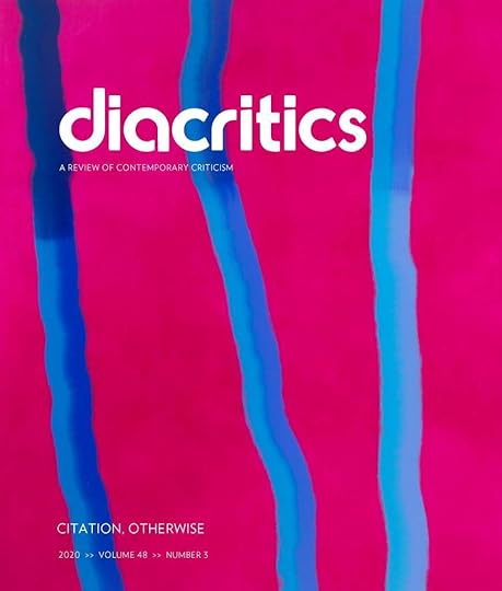 “Citation, Otherwise,” a special issue of Diacritics on the politics of citation, is now in the world thanks to incredible efforts of special issue editor Annabel L. Kim. I am very grateful to have my essay “Points of Reference: Citing Kamau Brathwaite Decolonizing Citation” included in the issue alongside a wonderful lineup of scholars and artists. The abstract for my contribution appears below. You can read the full essay here.