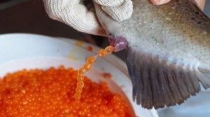 “milking” salmon for her roe. Photo: Tim Grey via Goodfood.com