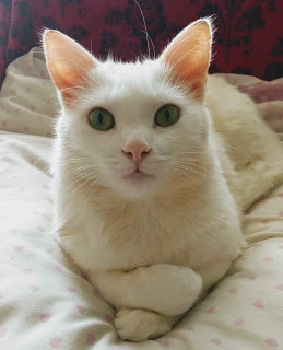 “Okay, let’s carry you boy”, she said, gently scooping him and taking him to the car. He was still wrapped in his little blanket and tucked in close to him was the little teddy bear that he liked to play-kick at times. I watched as his little head bobbed along towards the car. Tears streamed down my face. I remembered the day I stood at the same spot watching the day he arrived. My friend Paula carrying this little cage down the steps; inside the cage a bundle of white fur. That bundle of white fur was, five minutes later, stepping out of the cage, curiously investigating his new home, then purring and rubbing up next to me within moments. In no time he had decided he liked it here and he was going to stay.