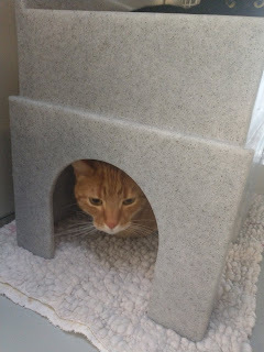 Whenever he didn’t like the sound of the bin-men, I played him “relaxing cat sounds” from YouTube. I had a soothing cat smells plug-in which he loved and he rubbed his nose against. He had a selection of Tuna, Dreamies and Whiska biscuits – foods that he loved.
