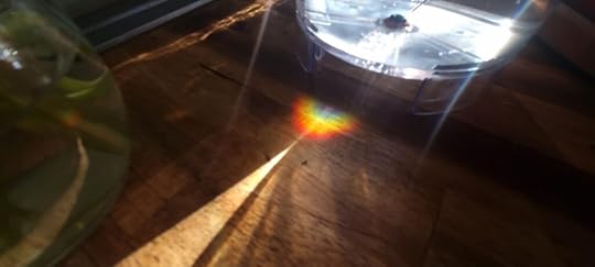 Dans mon cabinet, par la fenêtre, dans la cuisine, je les croise partout en ce moment et j’adore ! Ils m’émeuvent toujours beaucoup. Peut-être parce qu’un arc-en-ciel n’a pas d’existence matérielle, que ce n’est qu’un effet optique, qu’il n’existe que parce que nous le percevons… Il y a là une métaphore qui me touche. Il nous permet de nous rappeler que la lumière est un ensemble d’ondes électromagnétiques, qu’on ne perçoit la lumière que si elle va directement dans notre direction, que les couleurs de la vie sont partout, même si on ne les voit pas toujours.
