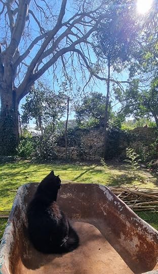 Accompagnée des Cracottes et sous la haute surveillance de Lili, j’ai éclairci notre bambouseraie qui en avait grand besoin. La brouette a été hyper convoitée par nos minous qui s’y sont relayés une bonne partie de la journée. Ici, on peut admirer Cracotte Kamala.