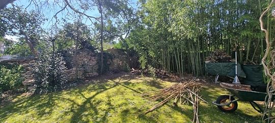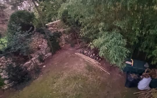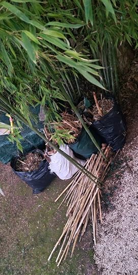 … et de l’autre, un second tas de bambous que je pense utiliser pour créer des ambiances, de la déco, des objets… on verra. Demain, ce sera mission déchetterie car on nous annonce un gros épisode cévenole pour les prochains jours, et ce serait dommage de laisser tout ça sous la pluie.