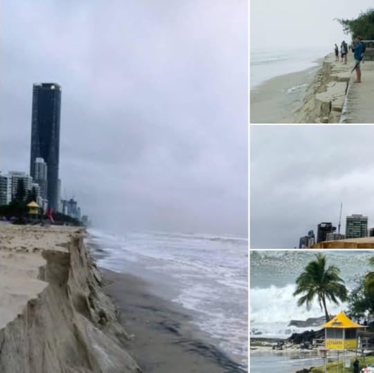 Pendant que la Pastichounette essuie son premier cyclone, nous traversons un nouvel épisode méditerranéen. Certes, rien de comparable, à en juger par les photos qui circulent sur Facebook, comme celles de la Gold Coast qui a été ravagée par le passage d’Alfred… La célèbre plage des surfeurs a reculé de près de 30 mètres, mettant en péril les bâtiments face mer.