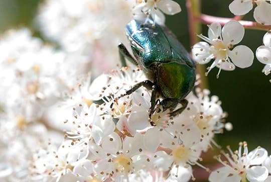 Et vendredi, la semaine s’est terminée par un rdv de réflexo avec une personne qui vit des choses douloureuses, aidante +++ d’un enfant lourdement handicapé. D’ailleurs, c’est fou le nombre de personnes dans le même cas qui viennent me consulter au sujet d’enfants : handicap, décès, assassinat… la maman en moi est forcément motivée à aider les deuils à se faire et les âmes à passer. J’étais donc en pleine séance quand elle est passée à mes pieds… Oh là là ! Surtout ne pas l’écraser avec les roues de mon tabouret… Prudence… La cétoine dorée était là, j’ignore comment puisque les portes sont fermées à cause des chats et en cette saison il fait trop froid pour laisser ouvert, mais elle était bel et bien là. Cela m’a intriguée et donné envie d’en savoir plus sur cette belle demoiselle.