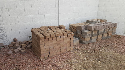 This isn't even the final tally of brick and blocks we moved.Also, note the gravel because that gets raked and moved later...