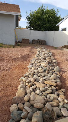 Matt moved the stack of retaining bricks in the background,then I had a great idea: create a riverbed out of all the large