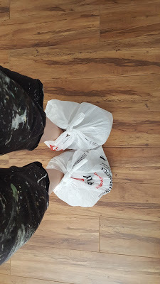 It rained earlier in the day (well, hail and rain but we'll get to that)and I didn't want to track that around the house. Improvise.