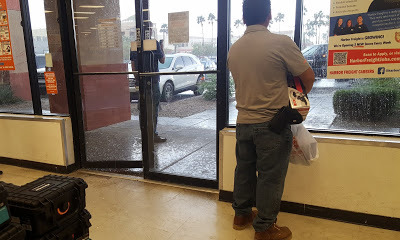 If you look really close, yes that's hail outside and on the floor at Harbor Freight.