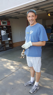 Action shot!Yes, this is day 2. Yes, that is Matt's favorite landscaping outfit.