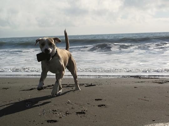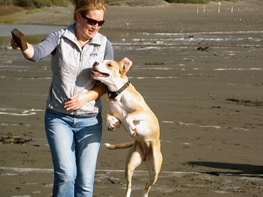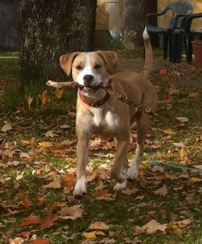 Lovie has gained 12 pounds since she came to us, a frightened ball of bones, in September. She’s such a joyful sprite who in the kind weather has been able to spend hours each day discovering what it is like to be the puppy she never got to be! She turned 1 in January (our guess) and upon reaching that milestone, began doing the devilish things pups are known to do… shoes or tools, or anything within reach actually, waggling from her mouth as she runs and leaps her way to the barn and back, happily bringing them when called only to grin and leap away to the far ends of the acres where we only can find her prizes after a major hunt … inserts gnawed, cats chased, hiding prized gopher heads in her mouth to deposit onto the hearth rug, jumping up to stand on the car hood, (“but the cats do it…”) joyfully dismembering and disemboweling her stuffies one by one and spreading their insides to the four directions. Really, all we see is a dog allowed to ‘become’ herself; a spirit once so encased in a fear that she could see goodness in nothing, allowed to emerge in safety, she’s burst from her chrysalis, and with her new joy has come a personality so enormous no darkness could ever again contain. Her once-deep well of fears is now very shallow, with only a few shadows left clinging to its crumbling walls. She still trembles at the sound of loud motorcycles and gunshot, and has distrust really of only one last person who I just think doesn’t understands dogs or what it was that she had to live through in her past, but we’re doing our best to help her move past these last remnants. She loves the dog park, her pack and their happy people, and at about 1:30 each day begins to pester and implore, as it surely is time to go… to run and wrestle with Buddy and Karma and Fred and other dogs who like her, came from devastated lives to emerge joyful bringers of happiness. We can’t say ‘Karma’, or ‘dog park’ out loud unless we can stand the time that follows that she wines and frets as she insists “get thee there”. (She is learning Greek now – like Djuna did before her – and soon ‘tha pa’me to parko?’ is something we’ll be spelling rather than saying.)