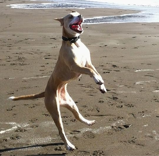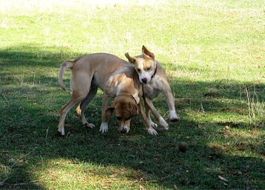 Lovie is just a pup, probably for the first time, really, in her short life. She’s learning how to ‘be’ in love and in safety, but really has come so far, so quickly. She’s studied the book that Djuna left behind for her in all of his scents that still linger. Food is good. Burying bones is good. Zoomies, leaping and flying and dancing, tongue waggling – good. Stuffies and sticks and water and pinecones – and socks and shoes are all good. (But Djuna forgot to tell her the part about bringing all of the things she asks us to throw for her, or those things she steals, back to us, running right past in mischievous squigglyness instead.) People are good. She has a job keeping us in line and making us laugh. She has horses to watch over and cats to cuddle – and is learning to speak the dignified language of ‘goat’. Greek will be next. With the great compassion kind dogs have, her boyfriend ‘Rudy’ has melted her icy fears and she now plays and leaps and runs with indomitable joy. She now loves the dog park and her pack of ‘littles’ there, and the larger dogs who can only try to keep up with her deer-like agility.