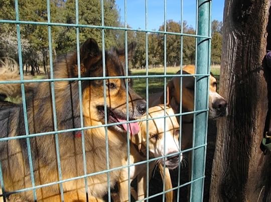 The dog kennels are in a cement block building, vibrating that afternoon with the loud joy of dogs that knew it was time for their afternoon walkies. It was if hungry lions were roaring, the sound overwhelming and terrifying, and I almost had to cover my ears.