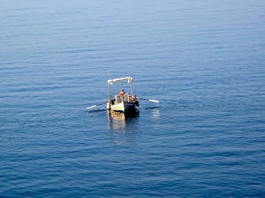 And then, it starts to trickle in. After being surrounded by the history of the Ancients and their kin, a passionate, lyrical people; after inhaling the culture and stunning colors and sea mist, eating and drinking far too much; watching the sun’s rise, daily, over an otherworldly sea while being serenaded by the waking swifts and gulls and even the occasional fisherman setting out for his morning’s catch… and after days spent at water’s edge, and hours spent bathing in the very healing sea, I empty out the unnecessary and begin fill up with that lightness. In the blushed, or sometimes tempestuous, dawn the words begin to pour out onto the page, tears and laughter flow effortlessly and the spoken word quiets. I go missing from the ordinary world sitting there with toes almost to the water where I AM the gull, the sun, the water, the sandy shore… the dolphins feeding just 20 meters away; the goats, their tinkling bells filling the atmosphere with a delicate music, browsing the verdant hills … and the Eleonora falcon soaring overhead. And comes the quiet. That’s it. Divinity. As my head empties, my heart eases. Priorities shift. It gets no better than that.