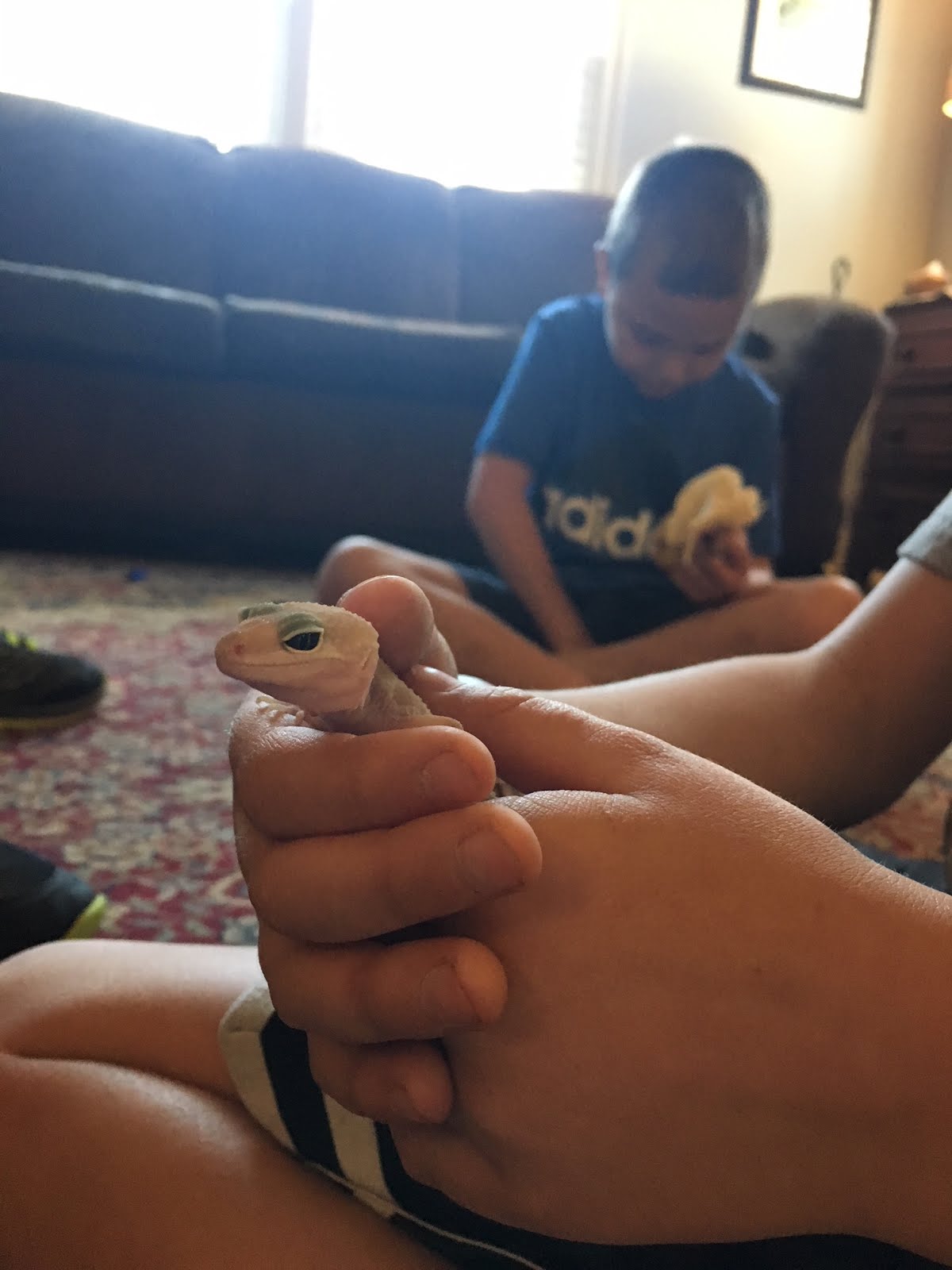 Eldon was so excited to be a pet owner. He bought his gecko with his own birthday money and has cared for him diligently. Just last weekend he wanted to put Mr. Crawley in a box to take to the hotel to show Nana the second she got to town- it’s been months, and he still acts like a proud daddy. He’d build him houses out of Jenga blocks, and he’d carry him on his shoulder. Mr Crawley was his choice for “free time” during homeschool every time. I remember the proud way he paid for the crickets with his own money; how having Mr. Crawley taught him to love all the reptiles in the world (except the big ones that eat geckos).