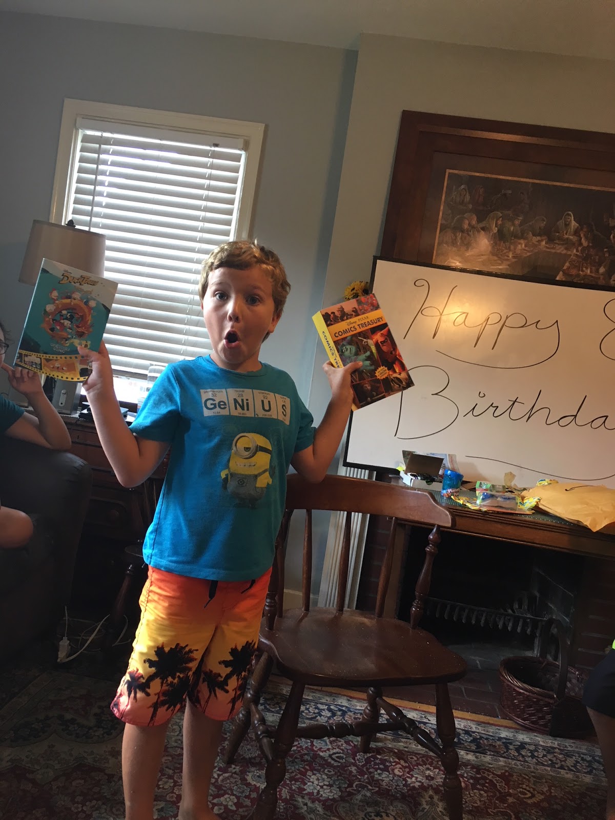 You continue to be a joy and delight to your family, as well as a constant source of laughter. This year was the year we moved from Michigan to Kentucky. This year was the year you began to be a homeschooled kid. It was also the year you fully embraced your love of birds, and you enjoy telling people you want to be an ornithologist. Your personal bird ID books is all marked up with the birds you’ve personally seen in the wild. One of my favorite memories with you this year was watching the barn swallows when we were camping at Lincoln Park (Indiana.) Remember how they brought food to the babies, and how the babies would squawk and carry on? Remember how they love to put white feathers in their nests? And remember when those babies got big enough to step out of the nest, and next day when we checked, they were gone? Your love of nature brings me joy. I love going on walks with you, never fast, and listening to you point out every amazing bird, bug, or critter, and telling me (loudly) everything you know about each one. Sometimes when you need a break from school you ask me if you can “go outside and watch nature.” For your birthday we got you a venus flytrap plant (we only have to wait a month or two to see the seeds hatch. You are so excited!) We often laugh at the things you say and the way you dress-- why do you pull your pants up so high, and how does your shirt always get so very dirty? Here are a few of my favorite memories from this past year: