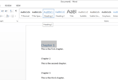 To do this, click on your chapter name, whether it’s ‘Chapter 1’, or simply ‘1’, and format it as a Heading. Word lets you have a hierarchy of headings, but I only ever use H1, because in my book(s), all chapters are created equal: