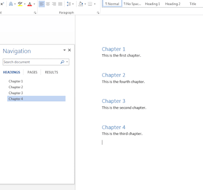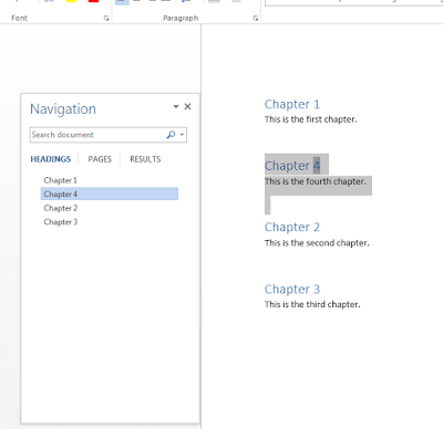5. If you decide Chapter 4 should really be Chapter 2, just click and drag in the navigation pane, and the entire chapter will move position in the document: