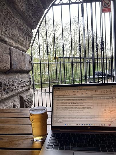 My most recent writing session in a pub: Inn DeepSome authors edit as they go. Personally, I tend to plow ahead without looking back. Occasionally, if I have a really bright idea of how to fix an earlier scene I might go back and tweak a little, but mostly it’s about gritting my teeth and focusing on the finish line.