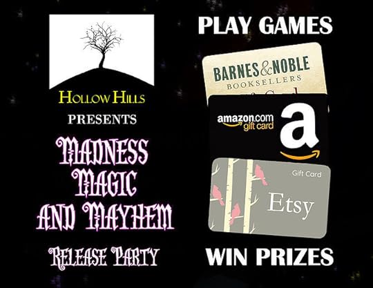To celebrate the release of my collection of short stories titled Tantalizing Tales of the Horrific and Fantastic, Hollow Hills is hosting a Facebook party. On July 26th, stop by Madness, Magic, and Mayhem for an evening of games, laughs, and prizes.