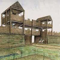 Reconstruction of gatehouse at Alchester fort.