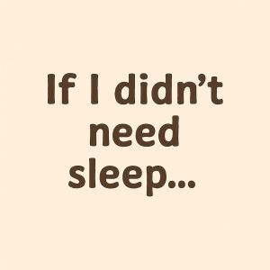 And maybe, just maybe, I’d use those hours to take over the world—not with armies or lasers, but with rituals, playlists, and communal magic. Because if I didn’t need sleep, I’d have all the time in the world to turn exhaustion into celebration.