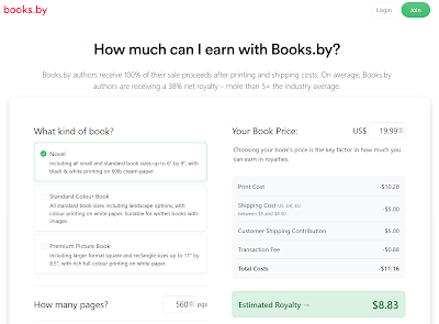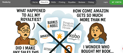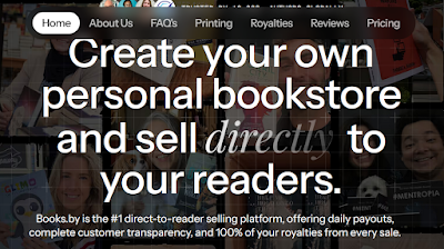 Soooooo... Today, we're gonna look at one of those author website offerings called Books.by. These guys say they outdo Amazon for self publishers because they don't take a portion of your sales. Let's check them out and do some math, shall we? Here's what their homepage looks like: