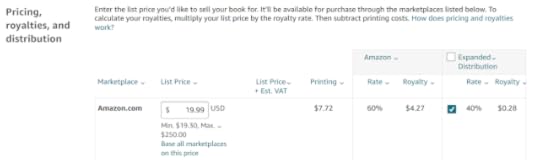 So, what does Amazon send me when someone pays $19.99 for that massive paperback (on Amazon, mind you, not for other marketplaces)?