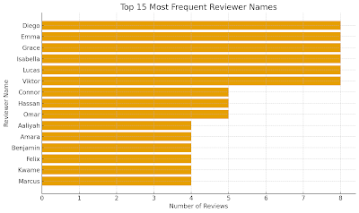Now, is it conceivable that with only 239 reviews, that many people have the exact same name? When it looks like a coincidence, it's usually a lie. BTW, there were also a TON of variations on each of those names, and I didn't list all the 3s. Sheesh.