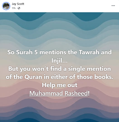 Muhammad Rasheed - Jay wrote: "To those reading… have you noticed that Muhammad is quoting ME all day… but hasn’t mentioned a SINGLE scripture? That’s intentional."